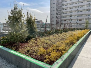 千葉市花見川区で屋根緑化と中庭緑化10月29日屋根70平米/中庭50㎡