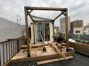 東京北区で屋上緑化デッキと植栽ます施工2月13日から5日間4月植栽をする予定で完成